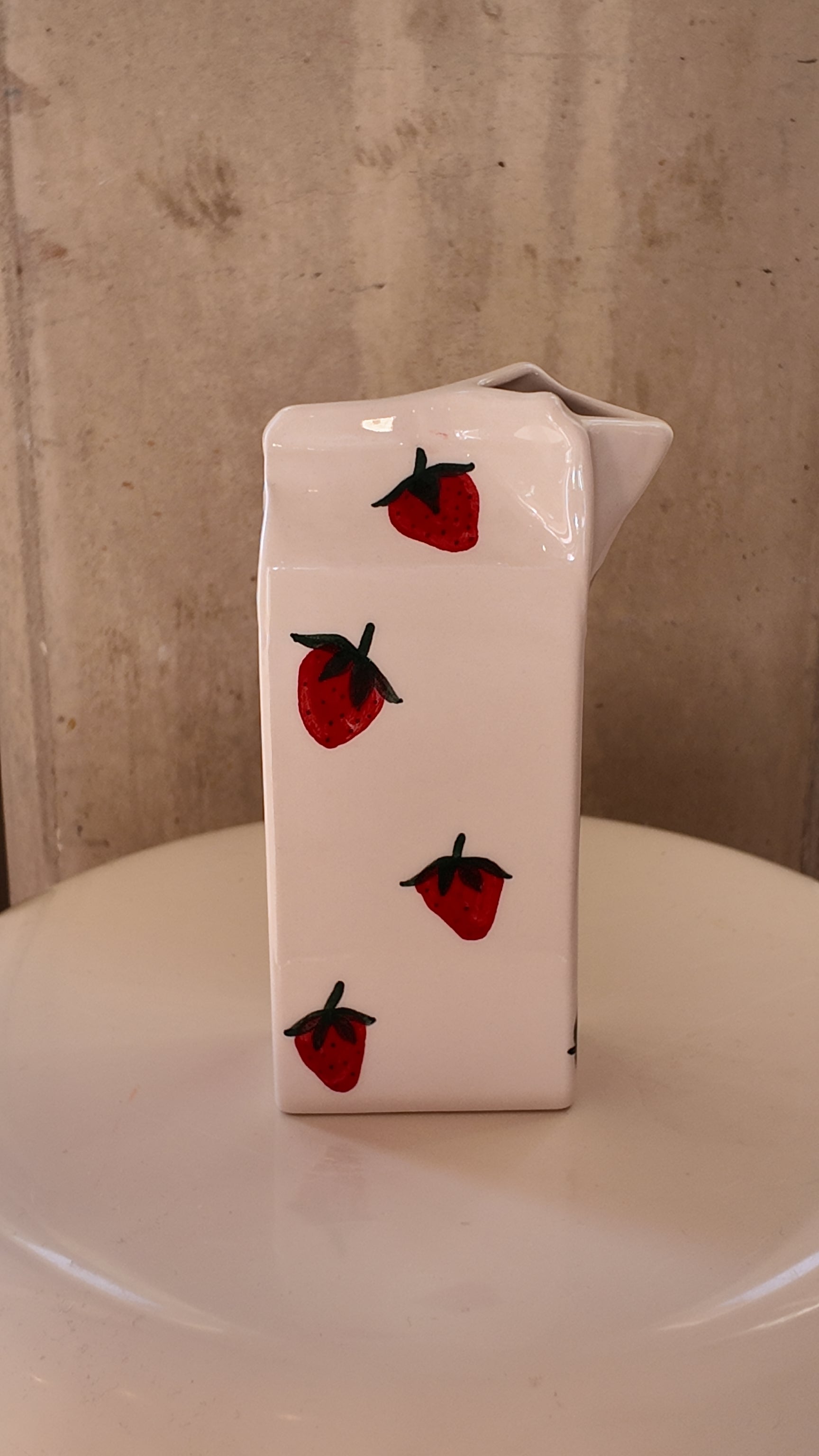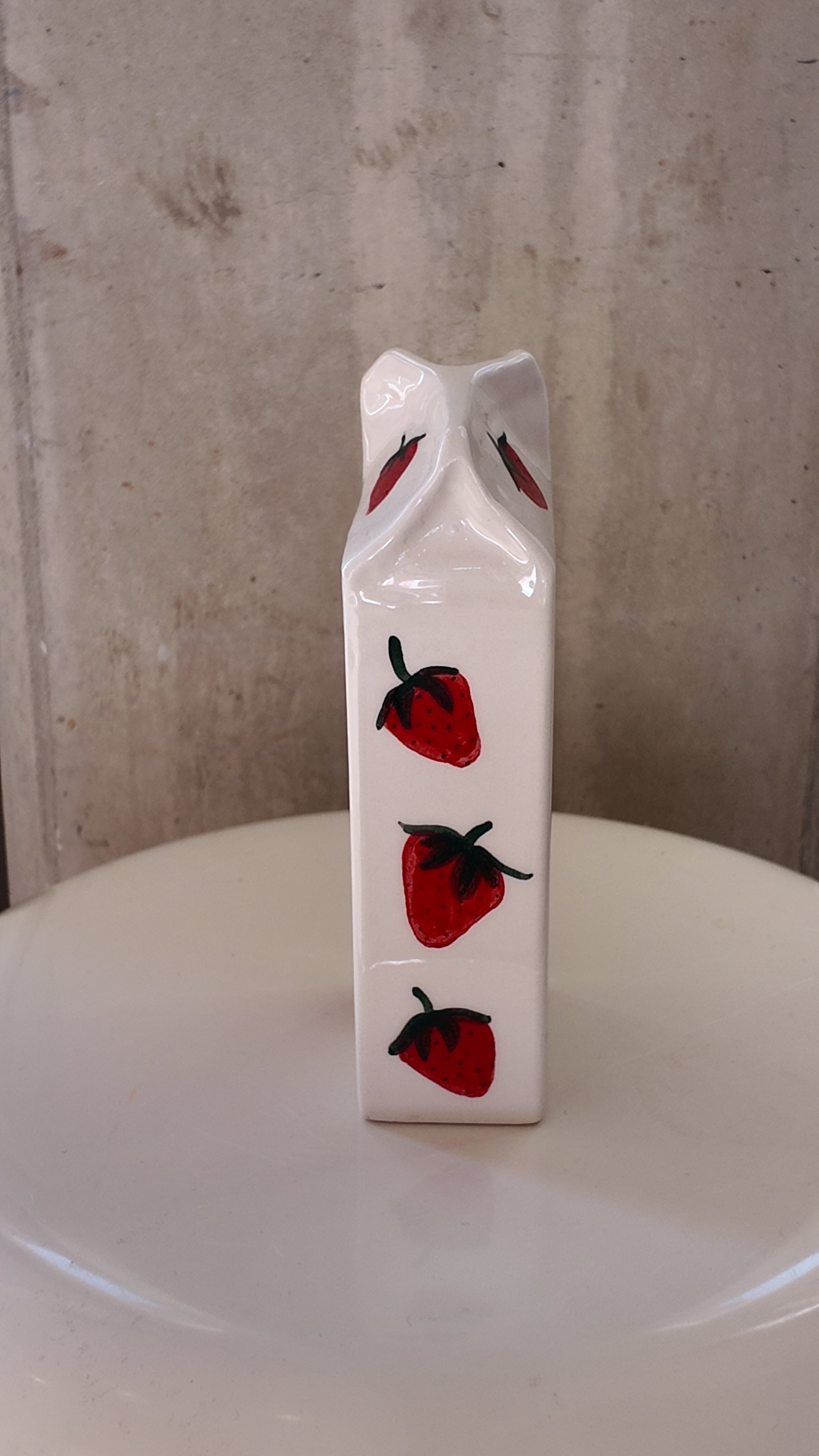• Handmade Strawberry Milk Carton Ceramic Vase