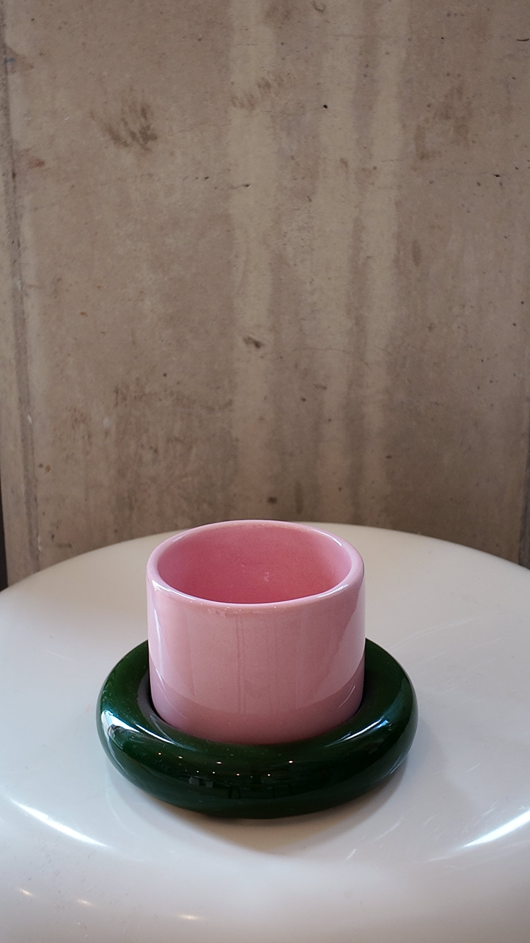 • Pink & Green Glazed Ceramic Cup