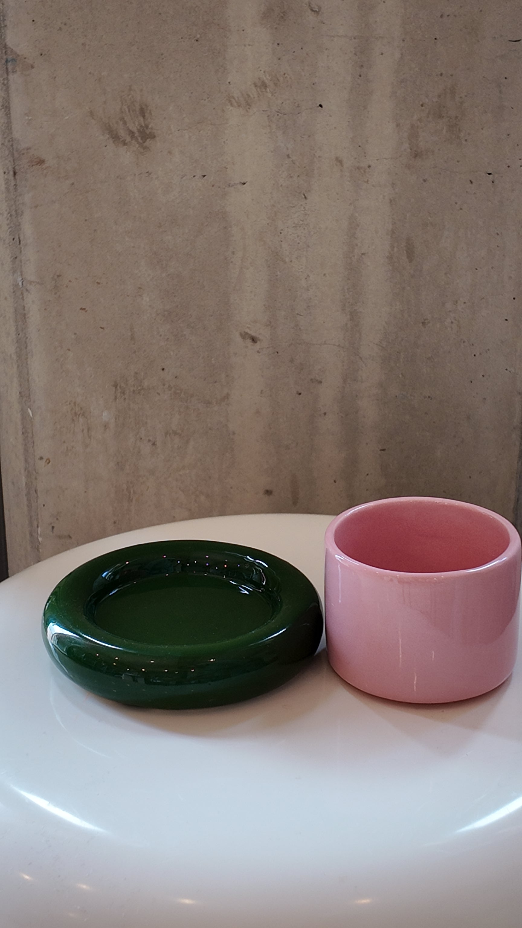 • Solid blush pink glaze finish