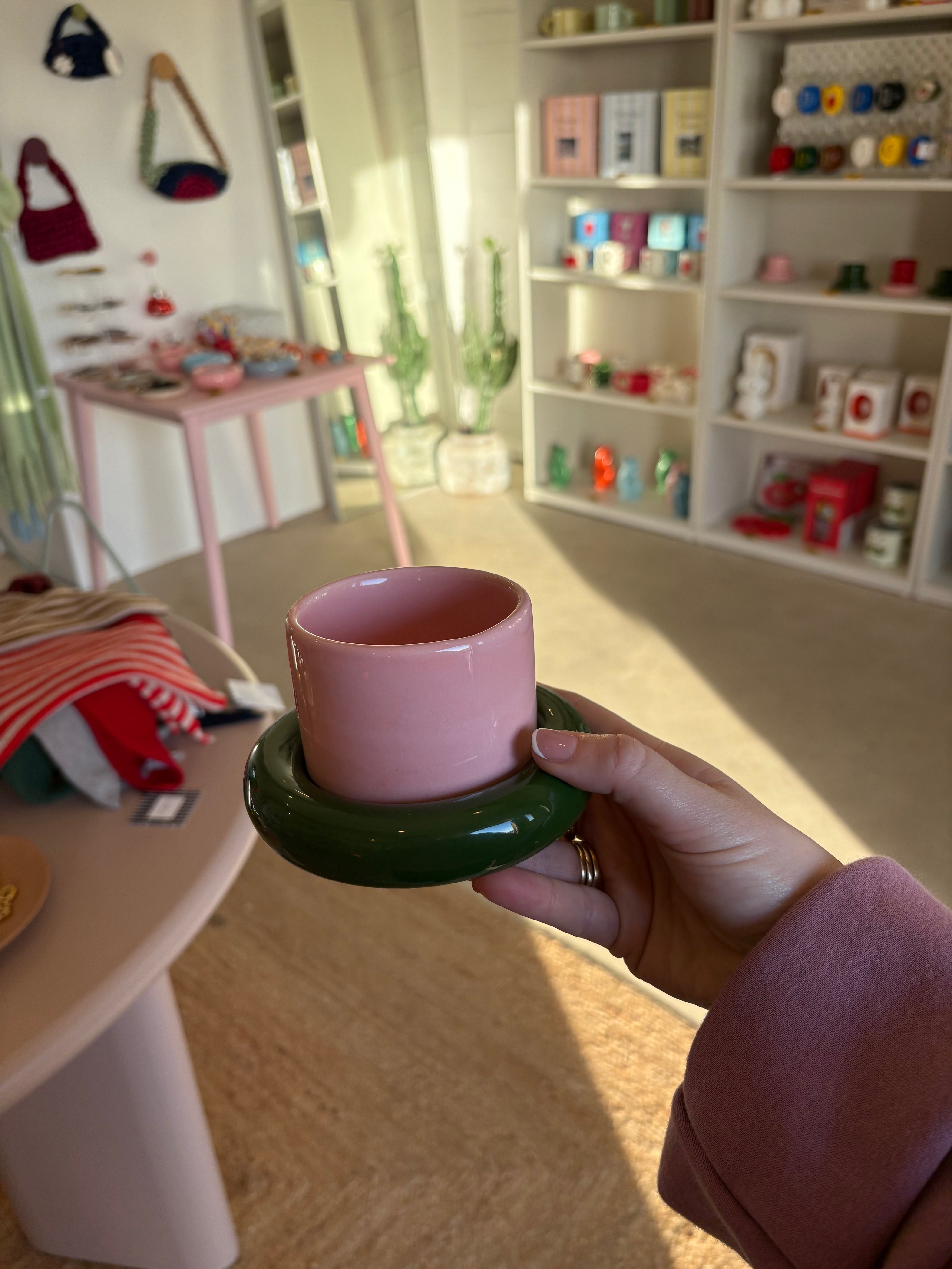 Handcrafted with care, this blush & Green pink coffee cup and saucer set is a modern take on everyday ritual. Each piece is wheel-thrown in stoneware and finished with a soft blush glaze, creating subtle variations in tone and texture that make every set truly one of a kind. Perfect for coffee, tea, or gifting, it’s a timeless addition to any collection.