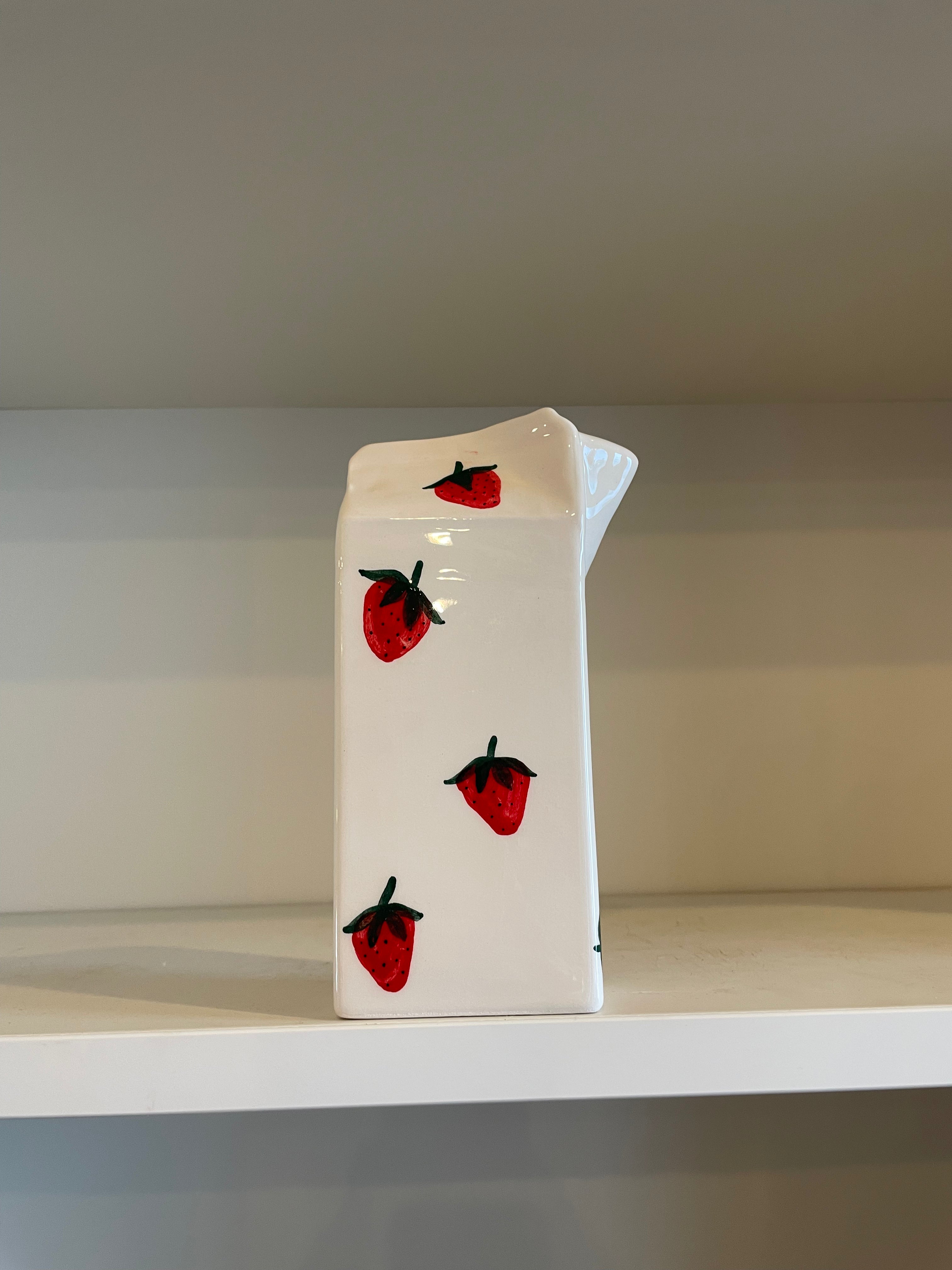 Handmade Strawberry Milk Carton Ceramic Vase | Small Jug | Prop Ceramics