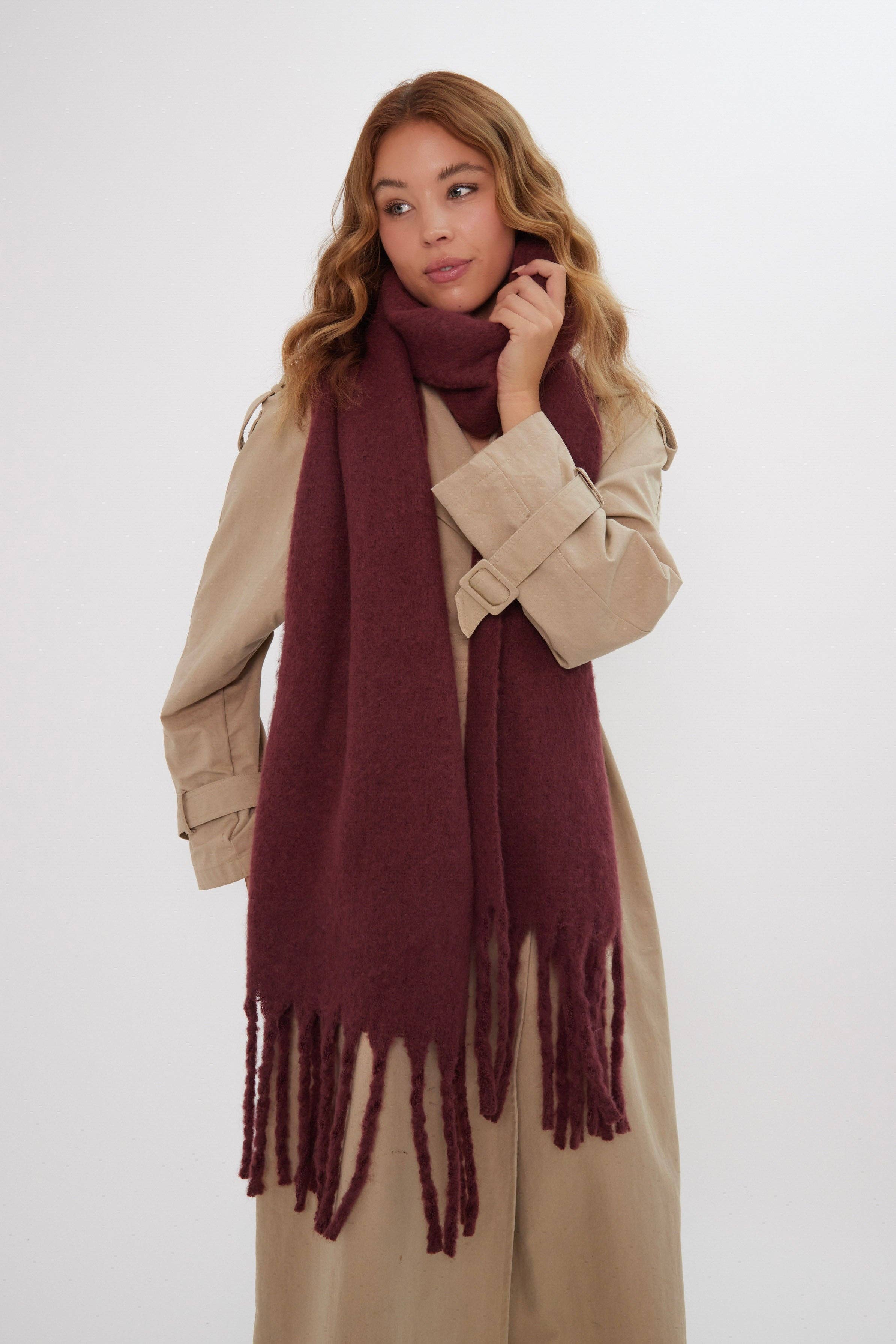 Wrap yourself in effortless warmth and elevated style with this oversized chunky blanket scarf. Expertly woven from ultra-soft yarn, it features a cosy, textured finish that makes it a go-to winter essential. Its rich burgundy hue adds a bold pop of colour to your cold-weather wardrobe, perfect for layering over everyday looks or statement outerwear.