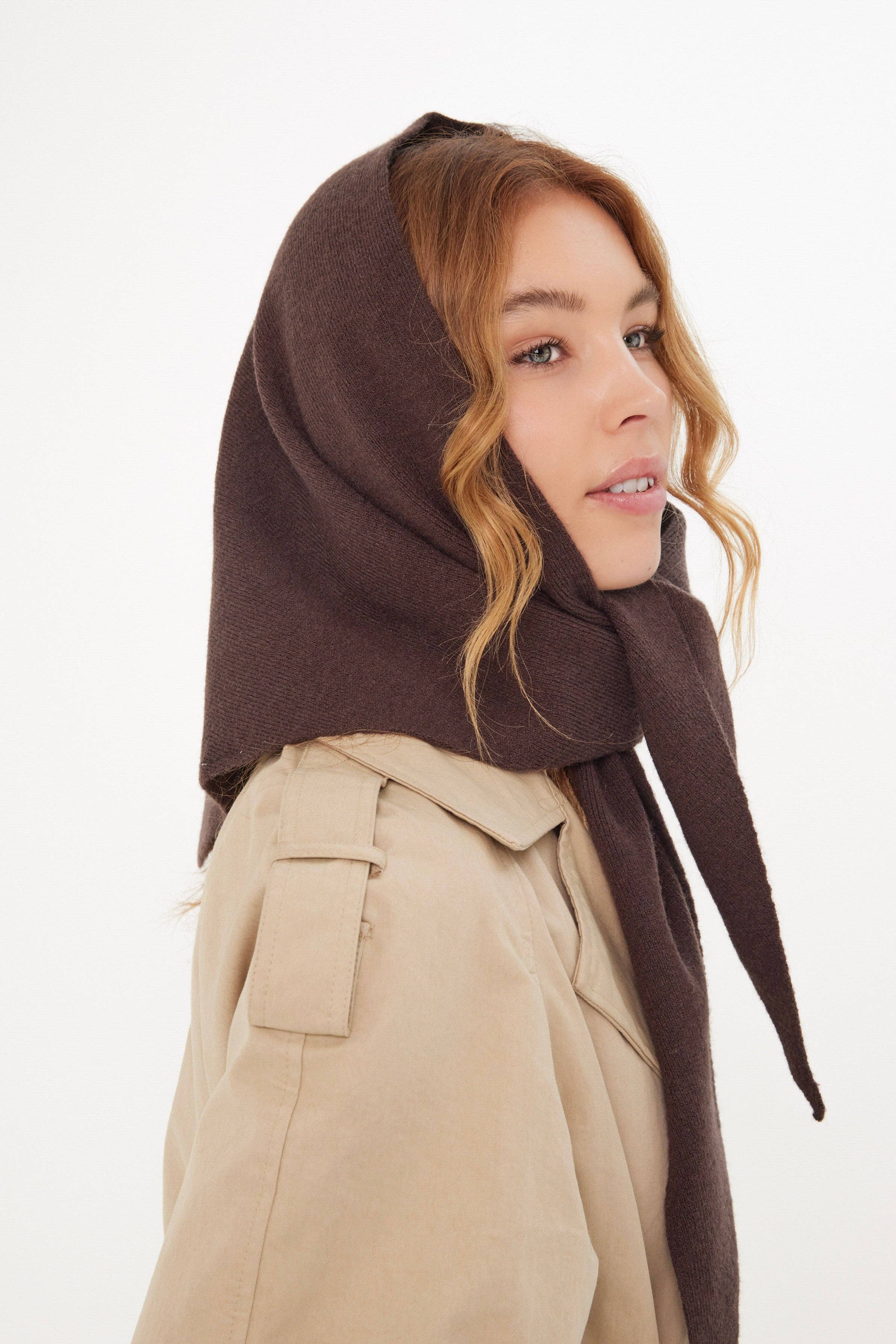 My Accessories London Knitted Triangle Hood Scarf in Brown Designed in a simple triangle shape, this scarf offers a fresh twist on a classic knit, giving you endless ways to style it including styled loosely over a coat or wrapped snugly around your neck as a hood. Crafted from a soft, cosy knit fabric in a rich chocolate tort brown colour, it’s the perfect accessory to add warmth and texture and create chic layering to your outfit. * Care: Wash at 30 degrees and can be ironed * Composition: 42% Acrylic 30% Polyester 28% Nylon * Product Code: AS25SC19